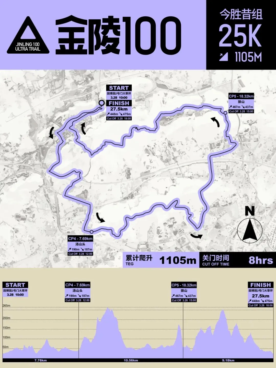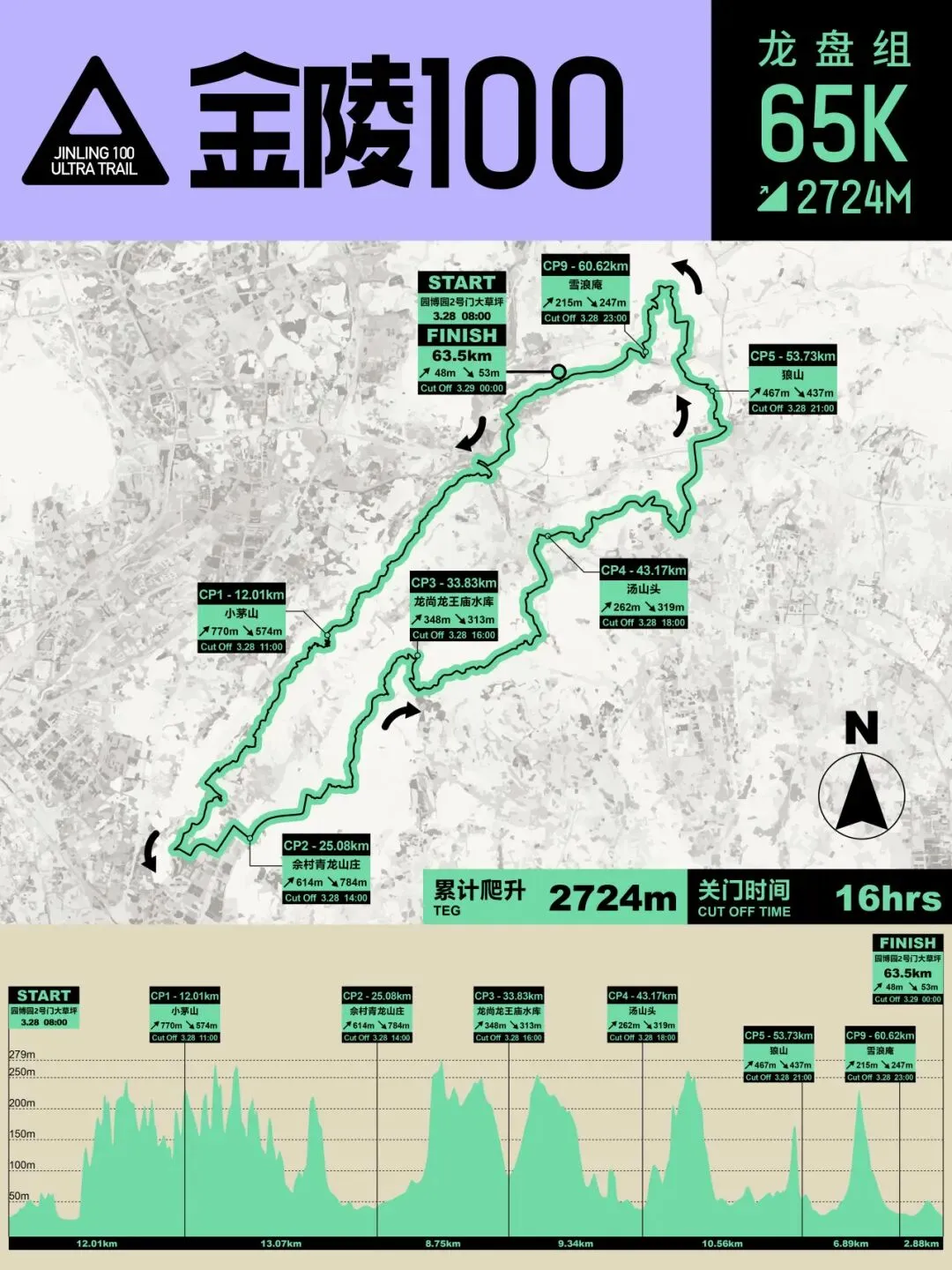 (一)起点到 CP1:小茅山站(12KM,爬升 770M,下降 570M,关门 3 小时)