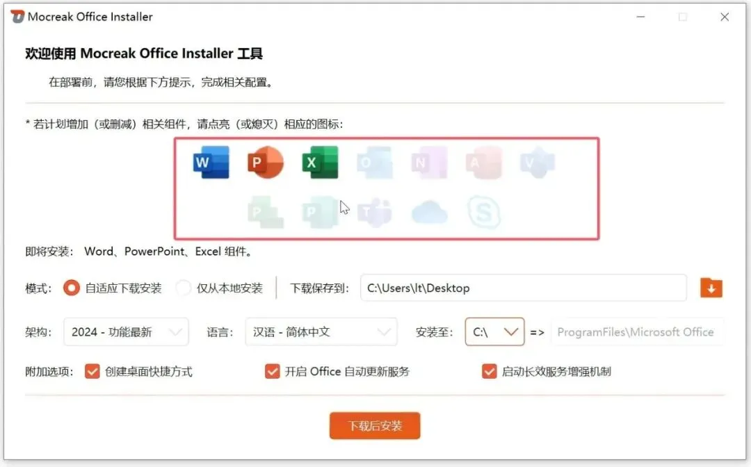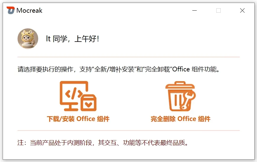 今天就给大家分享一款完美解决这些痛点的 Office 一键安装工具 ——Mocreak_Installer。它不仅支持按需自定义选择安装组件、自由修改软件安装路径,更能把原本繁琐复杂的 Office 安装部署流程,简化到一键搞定,电脑小白也能轻松上手。 Mocreak_Installer(Windows端) 这款 Mocreak_Installer ,是一款完全开源免费的 Office 专属安装工具,无任何捆绑插件、无付费门槛,纯净安全可放心使用。