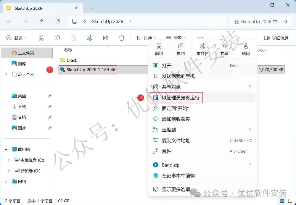 1、下载SketchUp 2026软件安装包到电脑上,右键选择【解压到SketchUp 2026\】
