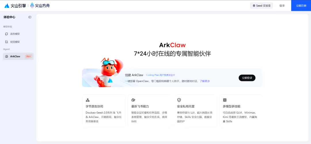 体验网址:https://www.volcengine.com/experience/ark?mode=claw