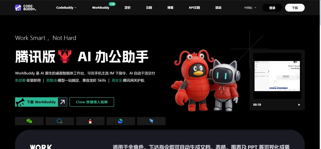 腾讯・WorkBuddy / QClaw状态:已上线 / 内测中核心亮点:深度兼容 OpenClaw 技能框架,支持企业微信、QQ 原生接入,社交场景优势拉满。一句话评价:微信生态党狂喜,未来可能直接在聊天框里召唤 AI 帮你干活。