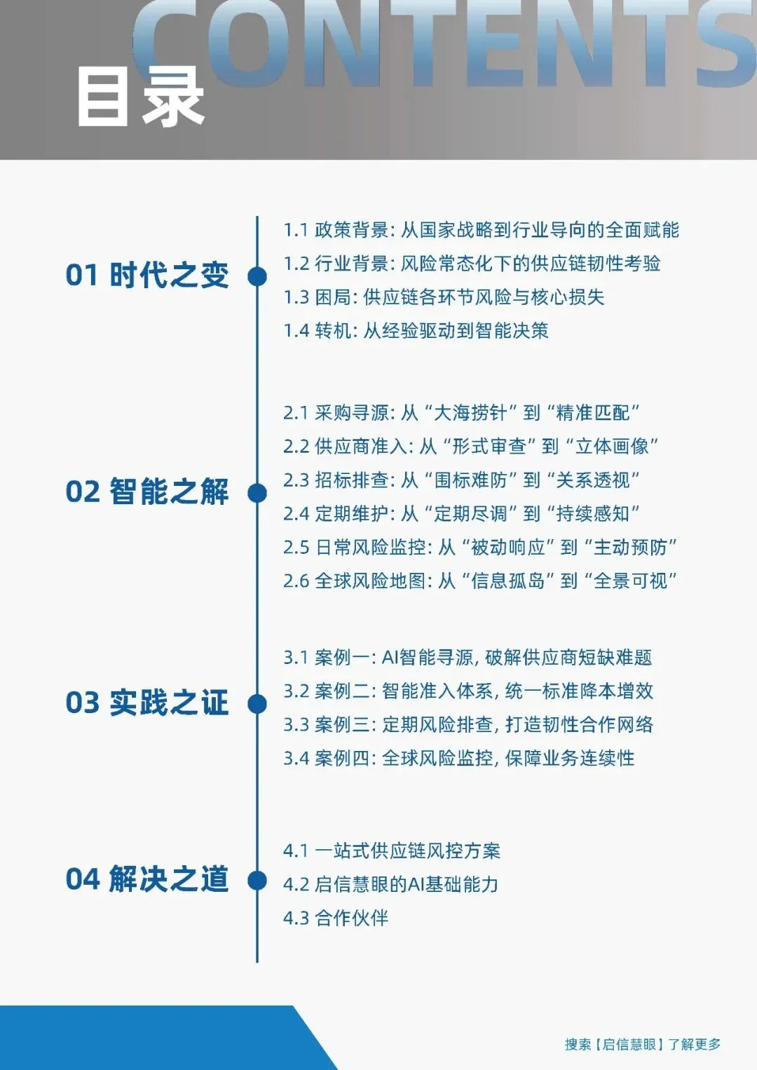 本报告《全球布局,洞见先行——构建AI时代的供应链韧性》系统阐述了在政策收紧、风险常态化的背景下,企业如何借助AI与大数据技术重构供应链风控体系,实现从“被动应对”向“主动预防”的转型。