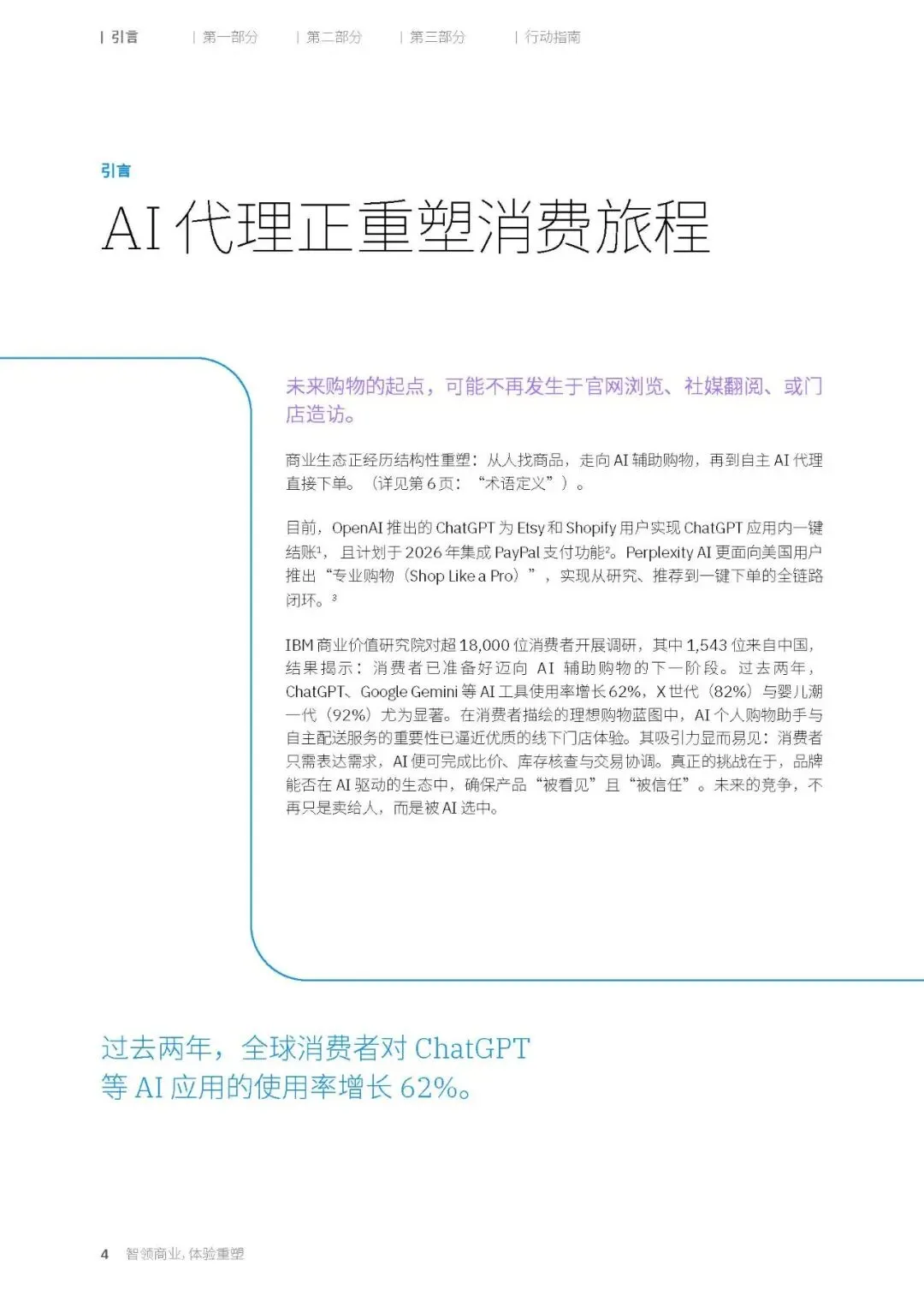 这份报告基于IBM商业价值研究院对全球18,000名消费者(含1,543名中国消费者)及200位行业高管的调研,揭示了AI代理如何重塑消费体验。核心结论如下: