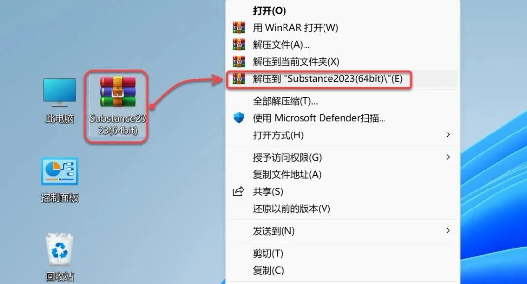 1.鼠标右击【Substance2023(64bit)】压缩包【解压到 Substance2023(64bit)】。