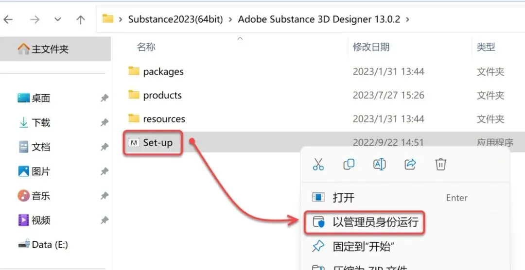 3.鼠标右击【Setup】选择【以管理员身份运行】。