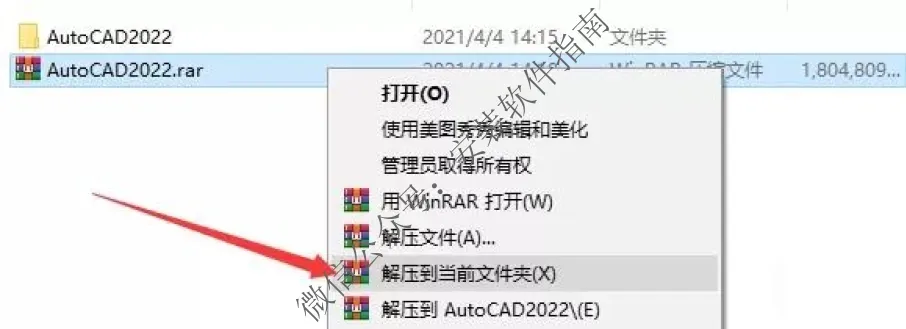 1、将CAD2022进行解压,解压成文件夹
