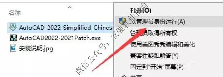 13、右键点击注册机AutoCAD2022-2021Patch.exe这个文件,选择以管理员身份运行!一定要管理员身份运行