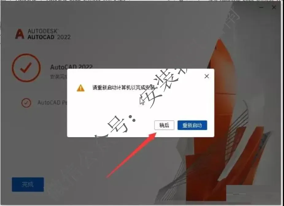 8、安装完,如果提示是否重启,选择稍后