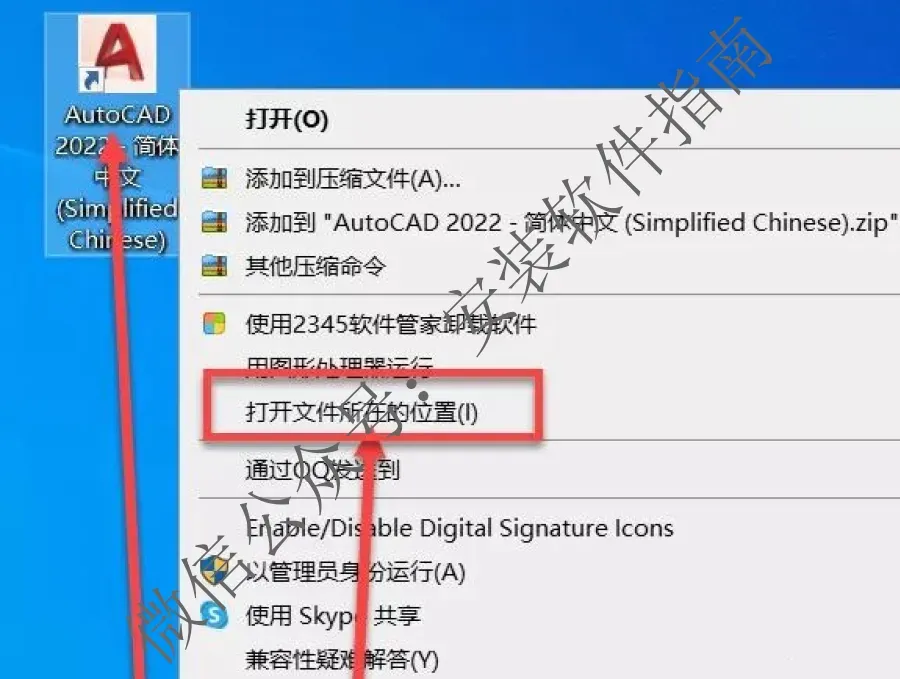 11、右键点击桌面CAD软件图标,打开文件所在的位置。如果桌面没有图标,去电脑左下角开始处寻找即可。