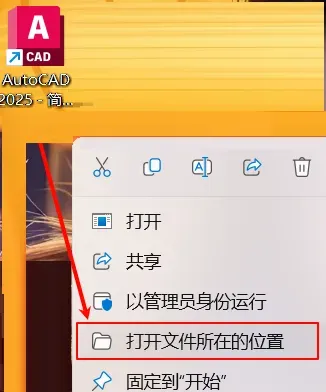 8右键点击桌面的CAD软件图标,打开文件所在位置