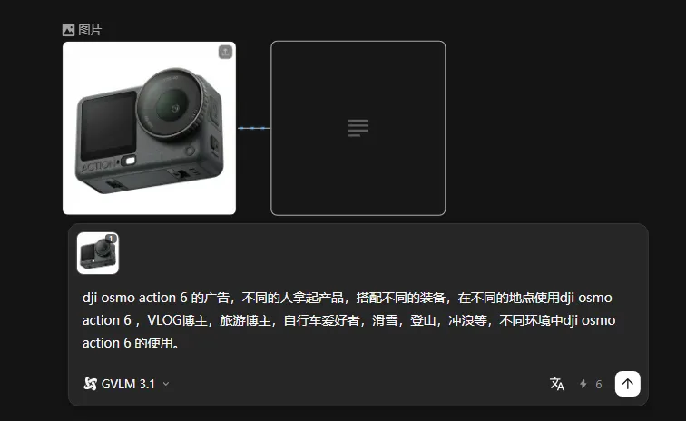 点击开始创作,就可以打开一个新的项目。以产品dji osmo action 6为例,上传一张白底图,图片直接拖入即可。