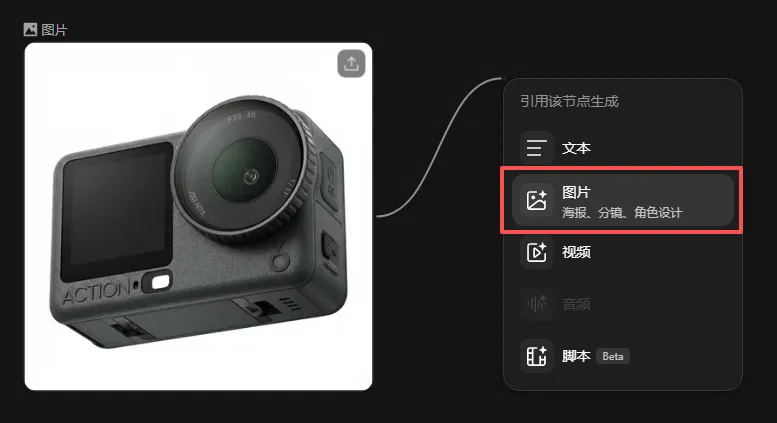 刚才几乎都是AI生成的,也有一些内容是需要我们传统手艺手搓的。也来介绍一下。上传一张图片,右侧加入图片节点。