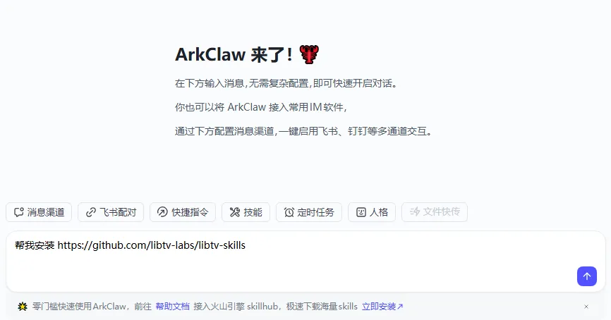 直接安装libtv-skills,直接把地址发给他,告诉他安装就可以。