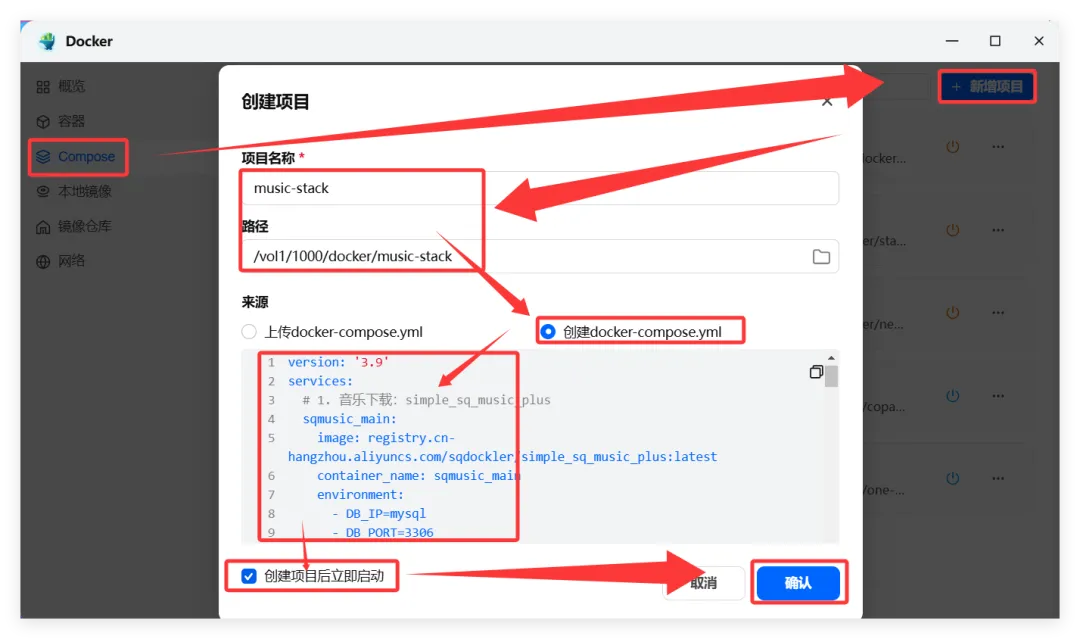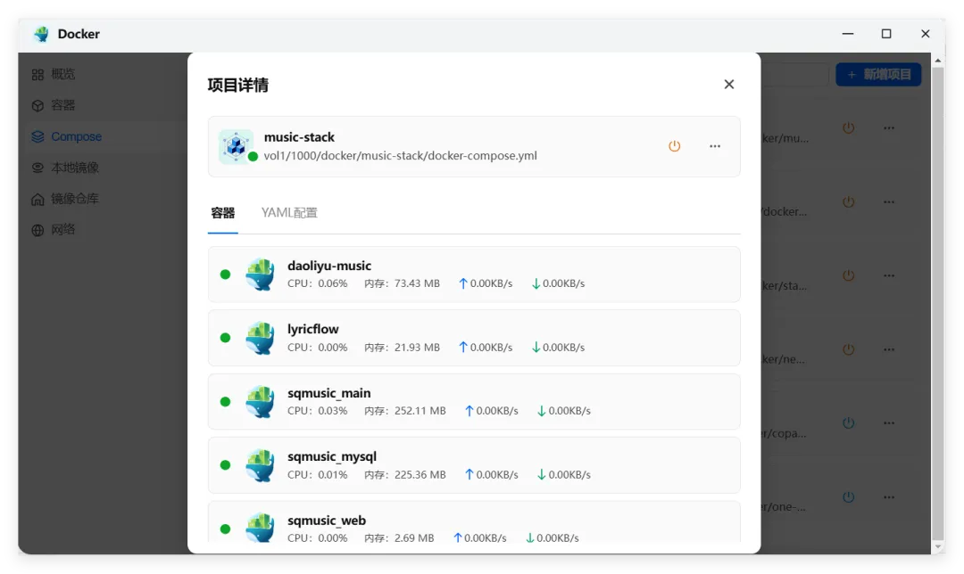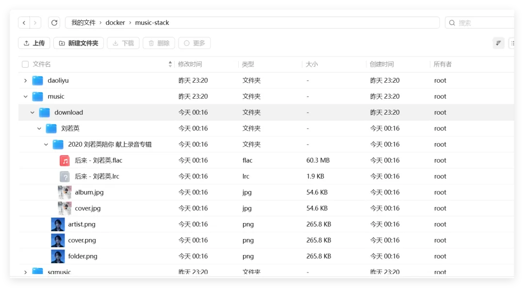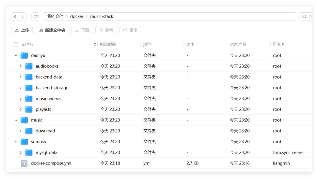 在整个部署过程中 ./music/download是作为共享音乐目录存在的,所有的音乐文件存取都在这里。端口可根据实际情况更改。 格式有问题可让 ai调整。