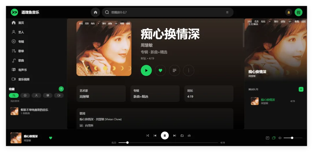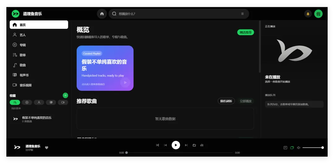 刮好的音乐怎么管理?道理鱼来帮你!道理鱼音乐是一款主打自部署的多媒体管理与播放方案,核心围绕高音质、轻量化、全链路体验打造,适配个人和私有部署场景。