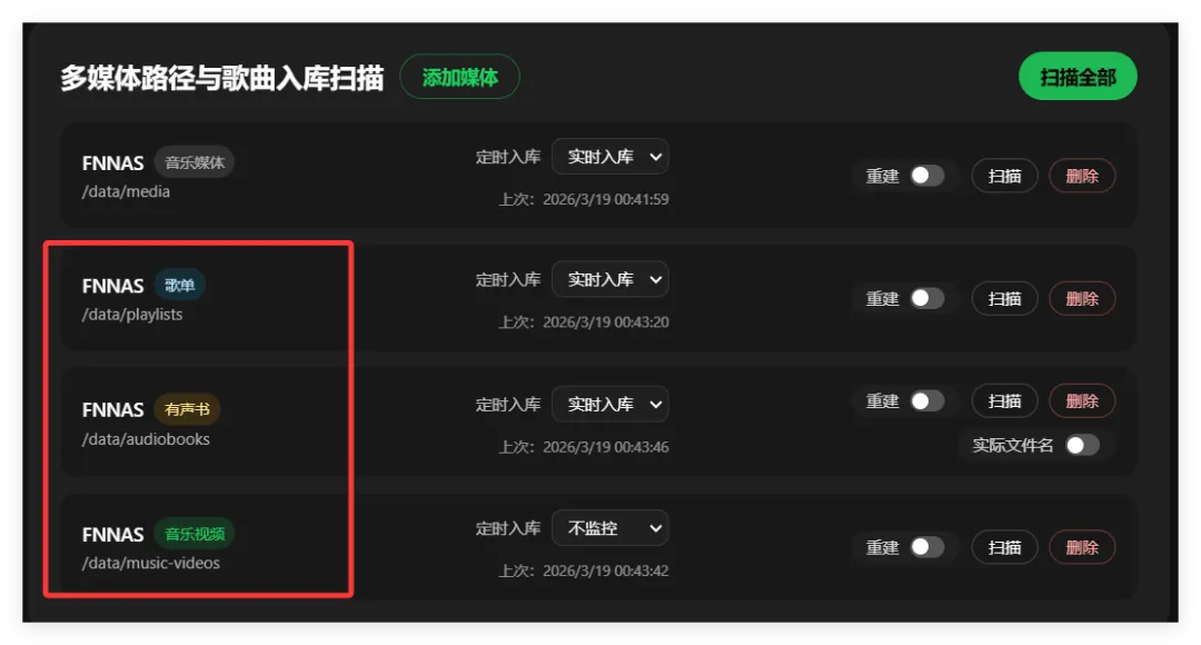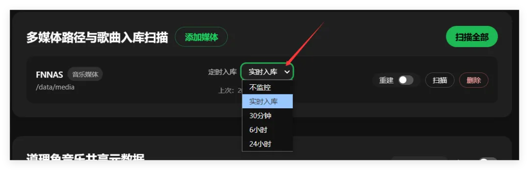 -./music/download:/data/media# 共享音乐目录,自动扫描