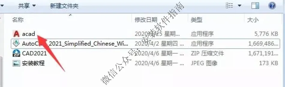 8、回到最开始解压的安装包中,复制acad这个文件