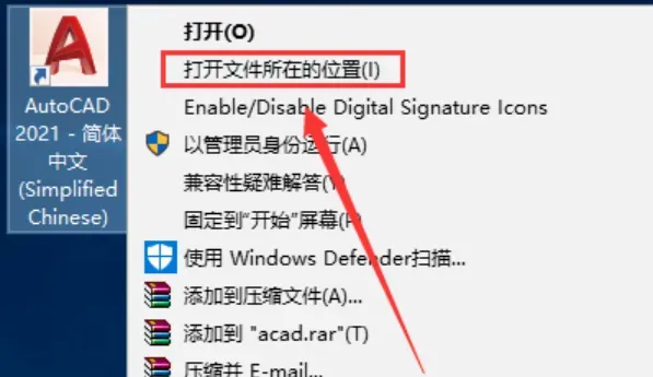 9、右键点击桌面CAD软件图标,打开文件所在的位置。如果桌面没有图标,去电脑左下角开始处寻找即可。