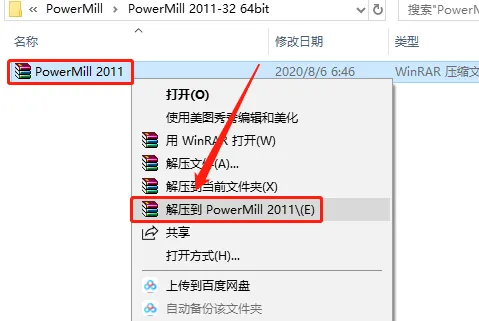 1.打开下载好的软件安装包,鼠标右击软件压缩包,选择解压到【PowerMill 2011】。