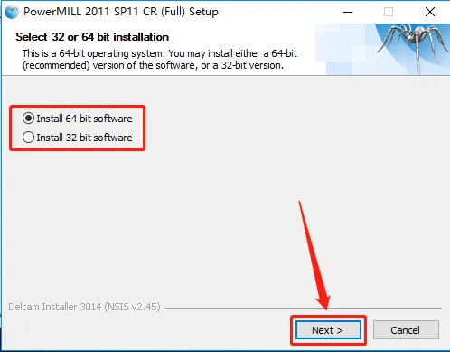 5.这里需要如果你的电脑是64位操作系统,就选择第一个【Install 64-bit software】,如果你的电脑是32位操作系统,就选择第二个【Install 32-bit software】,选择好后点击【Next】。如下图所示:
