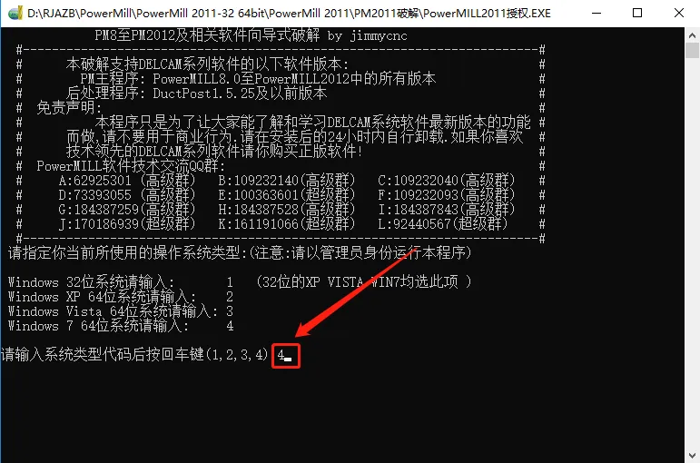 14.windows7 64位系统输入“4”后按【回车】键,windows7 32位系统输入“1”后按【回车】键。如下图所示: