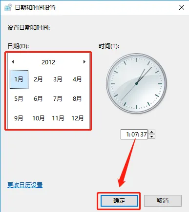 41.把电脑的时间改到2012年7月以前的日期,点击【确定】然后重新启动电脑。如下图所示: