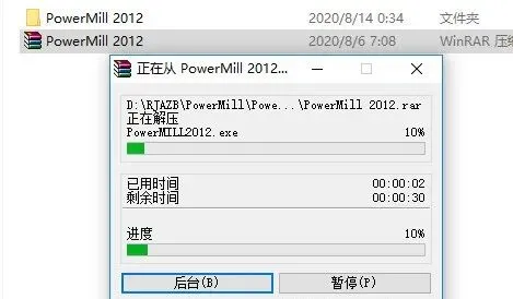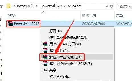 1.打开下载好的软件安装包,鼠标右击软件压缩包,选择解压到【PowerMill 2012】。