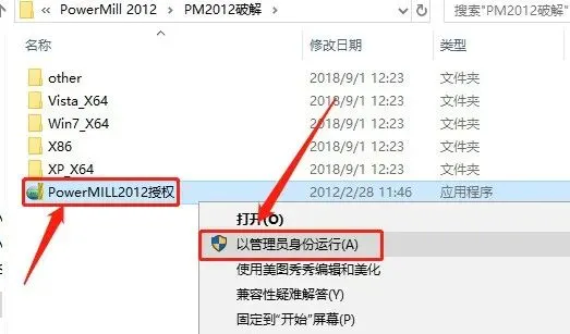 13.选中【PowerMILL2012授权】,鼠标右击选择【以管理员身份运行】。