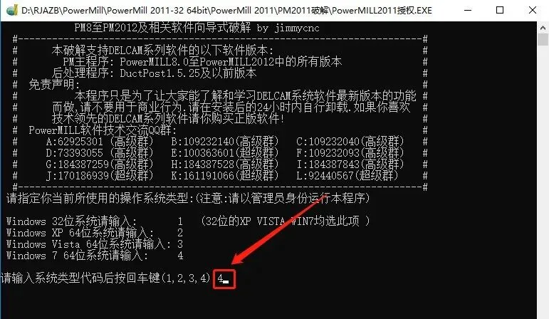 14.windows7 64位系统输入“4”后按【回车】键,windows7 32位系统输入“1”后按【回车】键。