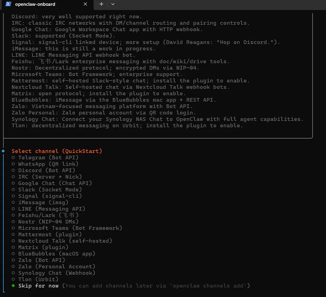openclaw onboard --install-daemon执行后,程序会引导你进行设置。它会让你选择要使用的大模型(比如 OpenAI 的 GPT-4、谷歌的 Gemini、或者国内的各种模型),然后让你输入对应的 API Key。