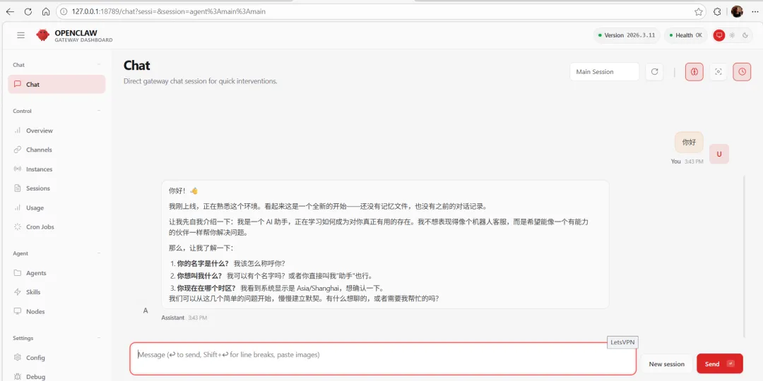 万事俱备!现在,让我们启动 OpenClaw 的控制台,开始对它发号施令吧。