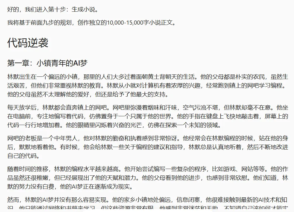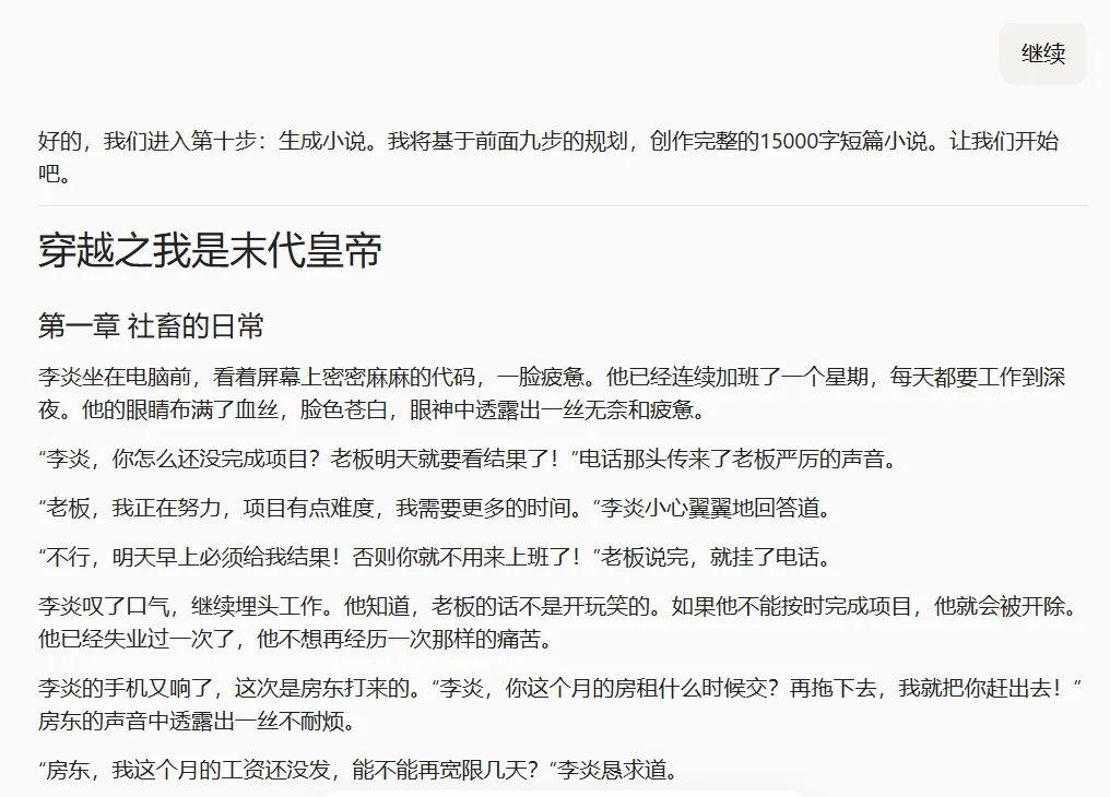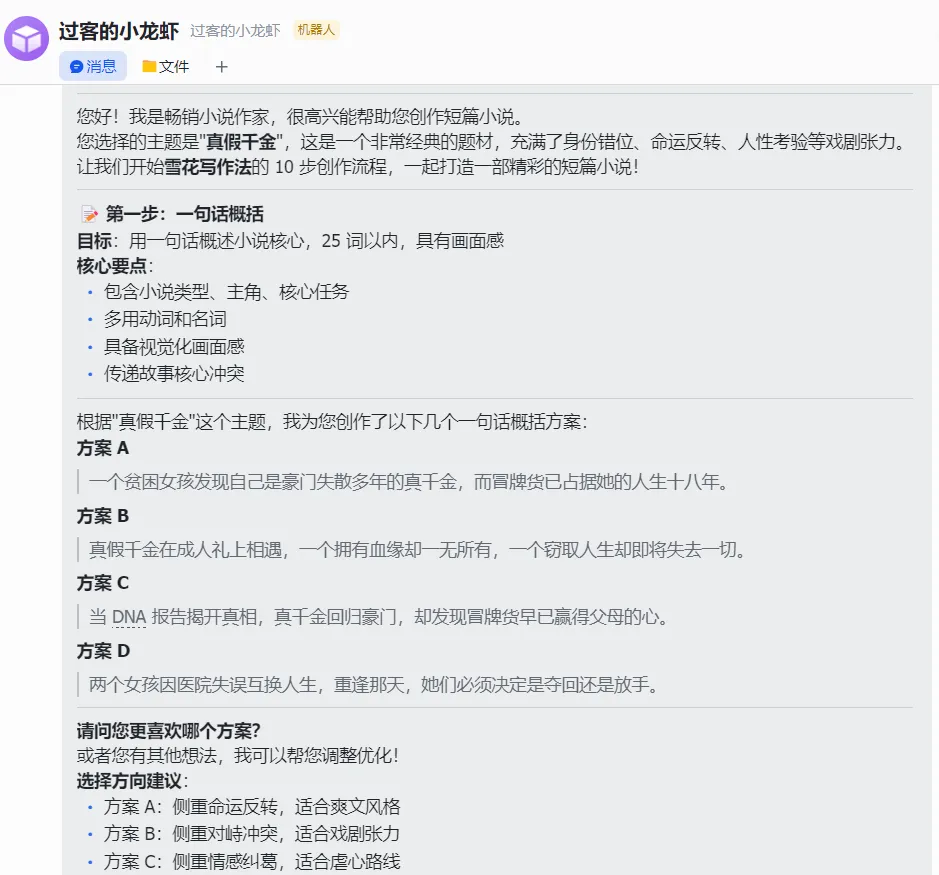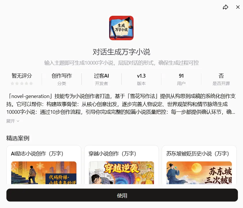 今天更新的这个技能可以通过层层对话,AI一步一步的帮助你生成万字小说,你只需要通过一句一句沟通清楚你的需求即可。