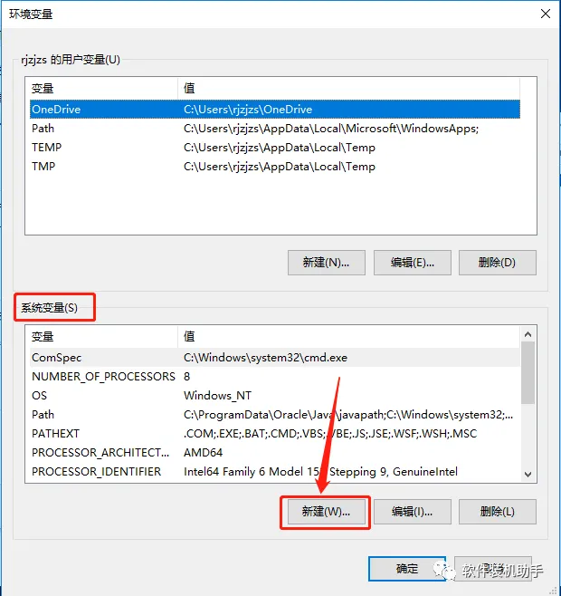 15.在【系统变量】下面点击【新建】。
