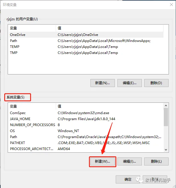 16.输入变量名JAVA_HOME,变量值C:\Program Files\Java\jdk1.8.0_144,输入好后点击【确定】。