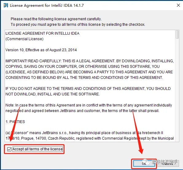 12.勾选【Accept all terms of the license】,然后点击【OK】。