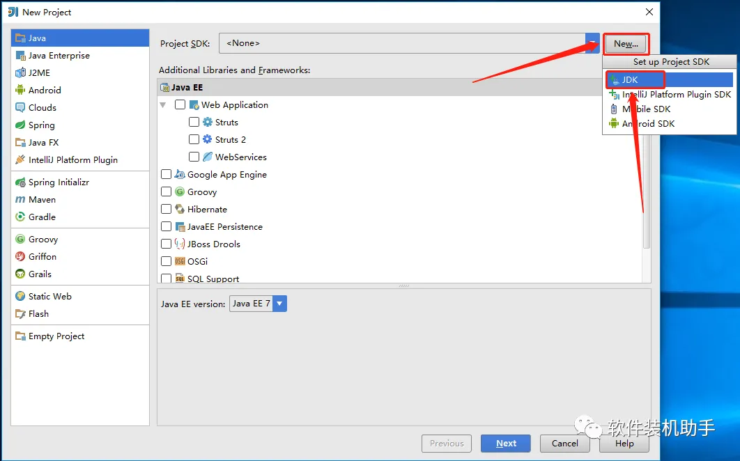 15.点击【New】,然后点击【JDK】选择JDK的安装路径。