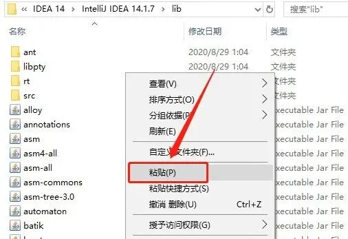 27.在打开的【lib】文件夹空白处,鼠标右击选择【粘贴】。