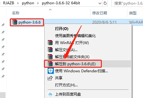 1.打开下载好的软件安装包,鼠标右击【python-3.6.6】压缩包,选择【解压到python-3.6.6】。