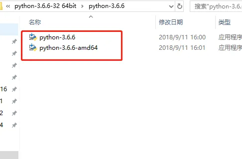 3.这里如果你的电脑是64位操作系统,则选择【python-3.6.6.amd64】安装程序,如果你的电脑是32位操作系统,则选择【python-3.6.6】安装程序。