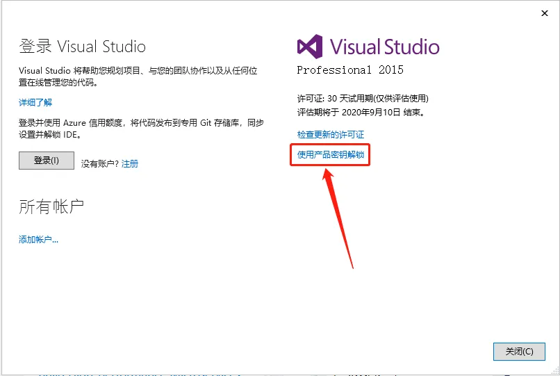 13.点击【使用产品密钥获得许可】。