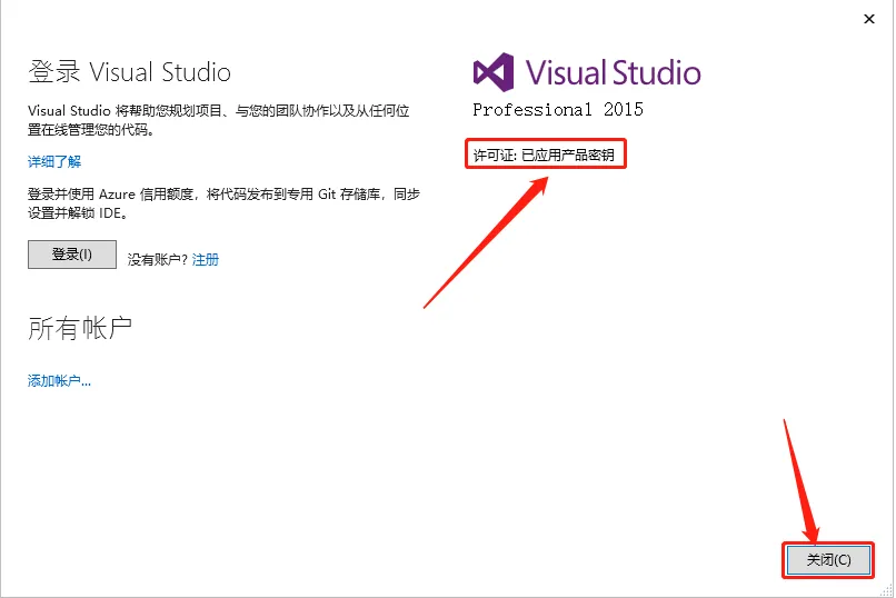15.显示【许可证:已应用产品密钥】说明激活成功,点击【关闭】。