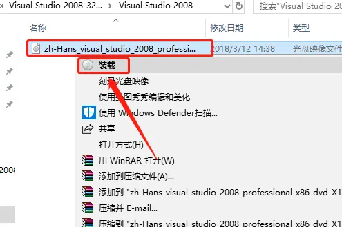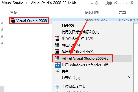 1.打开下载好的软件安装包,鼠标右击压缩包选择【解压到Visual Studio 2008】。