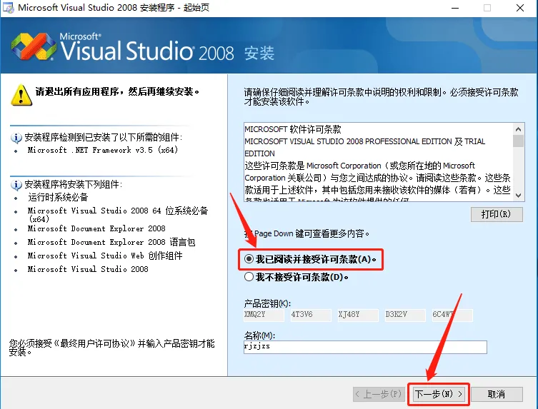 8.勾选【我已阅读并接受许可条款】,然后点击【下一步】。