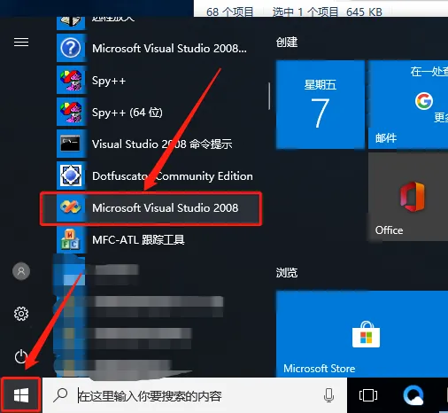 13.点击桌面左下角的开始菜单,在开始菜单栏中找到Microsoft Visua Studio 2008软件打开。
