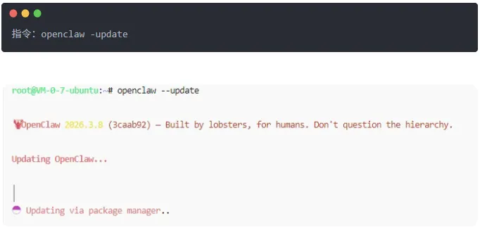 不是最新?两条升级路径任选:方案A:极客之选,命令行搞定bash openclaw --update