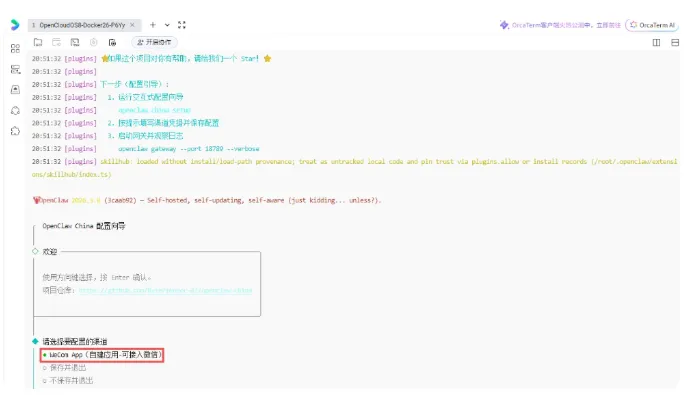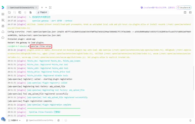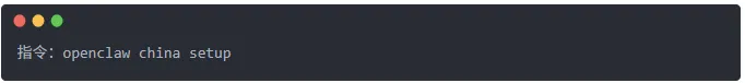 第四步:注入灵魂,完成配置在终端执行: bash openclaw china setup