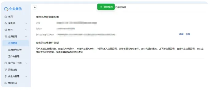 获取 WeCom App token 和 WeCom App encodingAESKey 参数