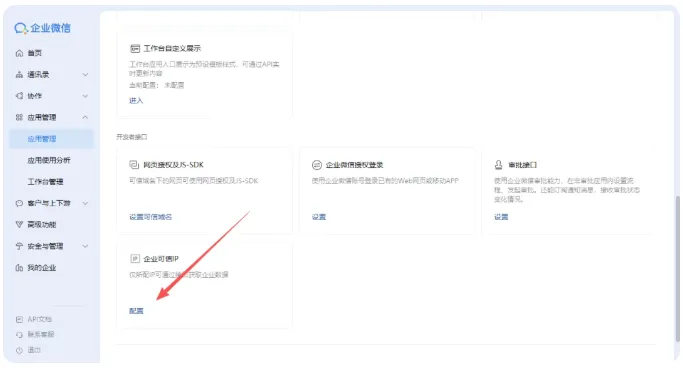 保存成功后,把这个公网IP加到企业微信的“可信IP”列表。