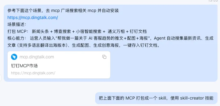 我看到钉钉的 MCP 市场的时候真的觉得看到了宝藏。