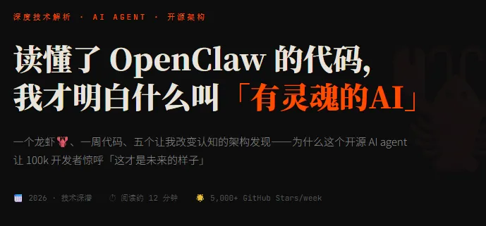 一个龙虾🦞、一周源代码分析、五个让我改变认知的架构发现——为什么这个开源 AI agent 让 100k 开发者惊呼「这才是未来的样子」